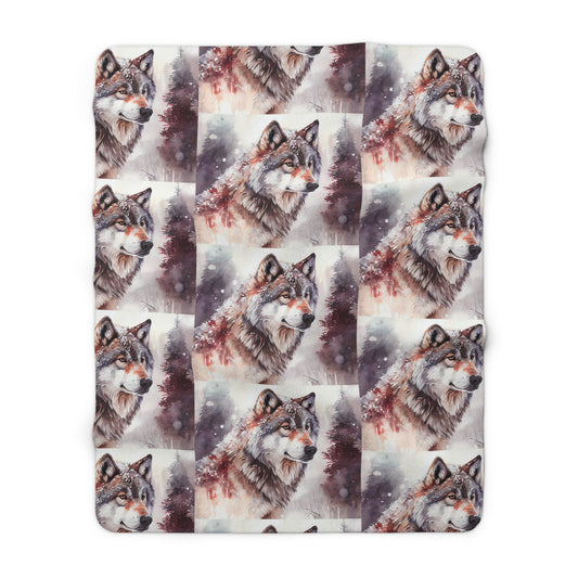 Sherpa Fleece Watercolor Wolf Blanket