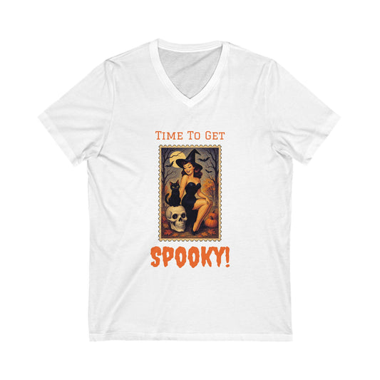 Spooky V-Neck Tee for Halloween Lovers, Fun Ghostly Shirt, Unisex Spooky Graphic Tee, Casual Fall Apparel, Halloween Costume Top