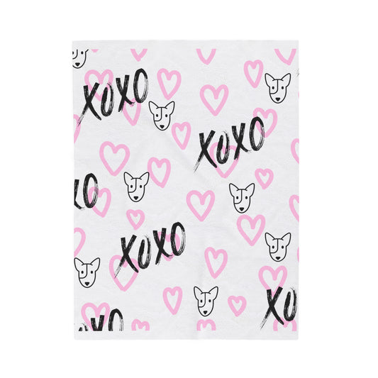 Bull Terrier XOXO Black And Pink Velveteen Plush Blanket