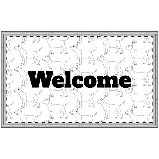 Polyester Doormat - Bull Terrier Outline Repeating Pattern White Mat