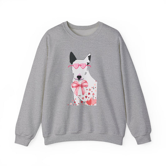 Bull Terrier Heart Mom Pullover Crew Neck Sweatshirt