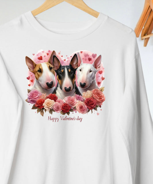Happy Valentine’s Day Bull Terrier Pullover Crew Neck Sweatshirt