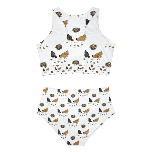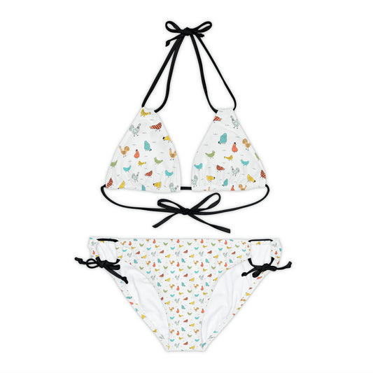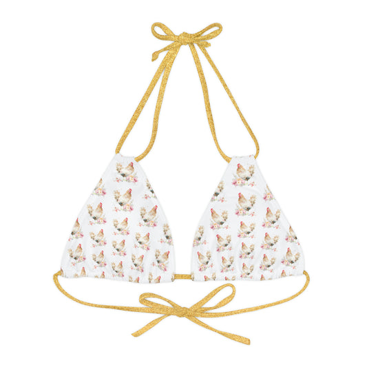 Watercolor Chicken Strappy Triangle Bikini Top (AOP)