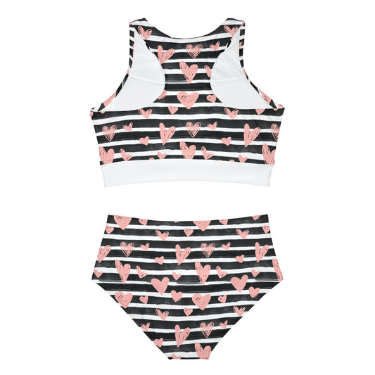 Hearts & Stripes Sporty Bikini Set (AOP)
