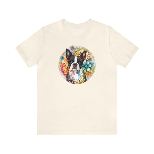 Boston Terrier Flowers Unisex Jersey Short Sleeve Tee